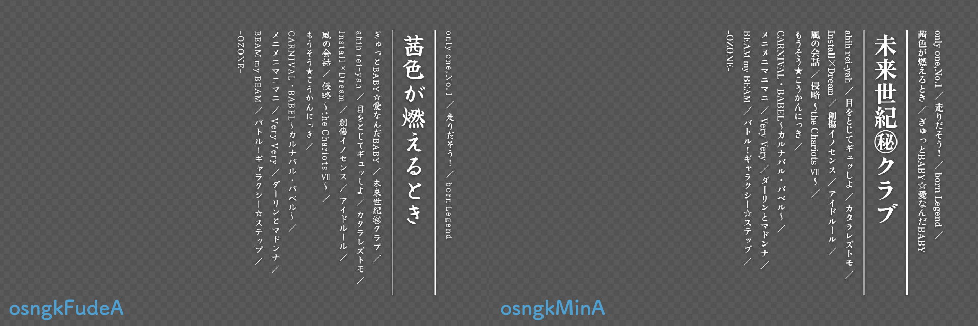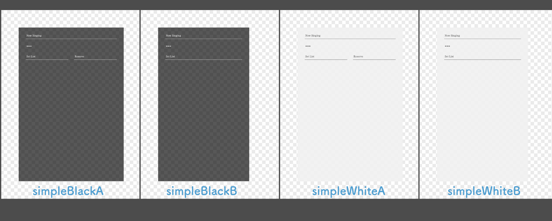 各フォルダにはそれぞれ異なるスキンが設定されています。お好みでどうぞ。末尾にBとついているものにはReserve欄がありません。予定したセトリを見せたくない、配信の流れで選曲したい際にご活用ください。